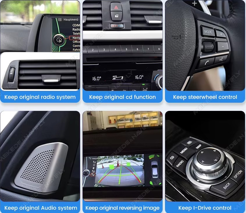 Ši sistema integruojama prie originalios BMW iDrive sistemos (NBT / CIC), todėl išlieka visos gamyklinės funkcijos, o papildomai gaunate Android operacinę sistemą, Apple CarPlay ir Android Auto bei plačias multimedijos galimybes.