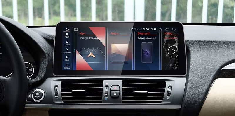 Ši sistema suteikia didelės raiškos 12.3 colių QLED ekraną (1920×720), greitą Android veikimą, belaidį Apple CarPlay, Android Auto ir pilną integraciją su originalia iDrive sistema bei funkcijomis per CANBUS modulį.