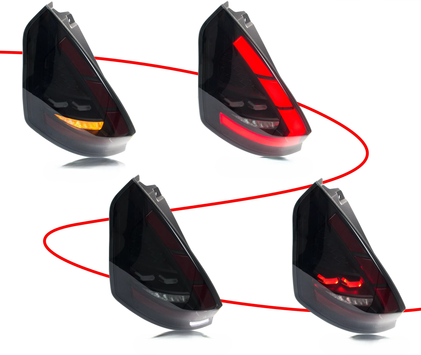 Ford Fiesta galiniai LED žibintai – tai modernus ir aukštos kokybės apšvietimo sprendimas, skirtas Ford Fiesta automobiliams, siekiantiems atnaujinti galinę automobilio dalį ir pagerinti apšvietimo kokybę bei matomumą kelyje. Pažangi LED technologija užtikrina ryškų, aiškų ir energiją taupantį šviesos srautą, kuris veikia geriau nei įprasti halogeniniai sprendimai – ypač tamsiu paros metu ar blogomis oro sąlygomis.