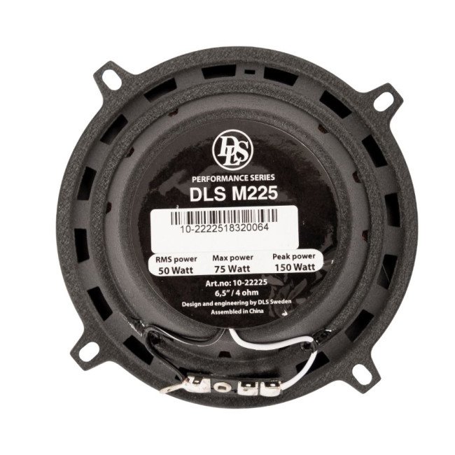 DLS M225 – tai 13 cm (5.25 colio) dviejų juostų koaksialiniai automobiliniai garsiakalbiai, pasižymintys aukštos kokybės garso atkūrimu, patvaria konstrukcija ir patogiu montavimu. Šis modelis sukurtas kaip efektyvus originalių gamyklinių garsiakalbių patobulinimas, užtikrinantis didesnį aiškumą, tikslumą ir išraiškingesnį garsą.