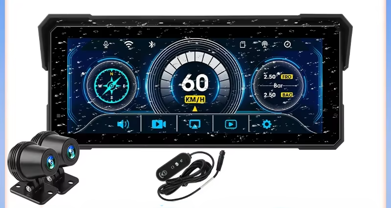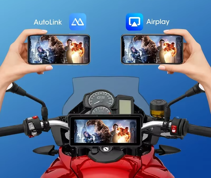 Motociklo CarPlay ekranas – aukštos kokybės multimedijos sprendimas, skirtas motocikliams, kuriuose norite naudoti Apple CarPlay arba Android Auto navigaciją, muziką, telefono funkcijas ir kitus išmaniuosius sprendimus saugiai ir patogiai.
