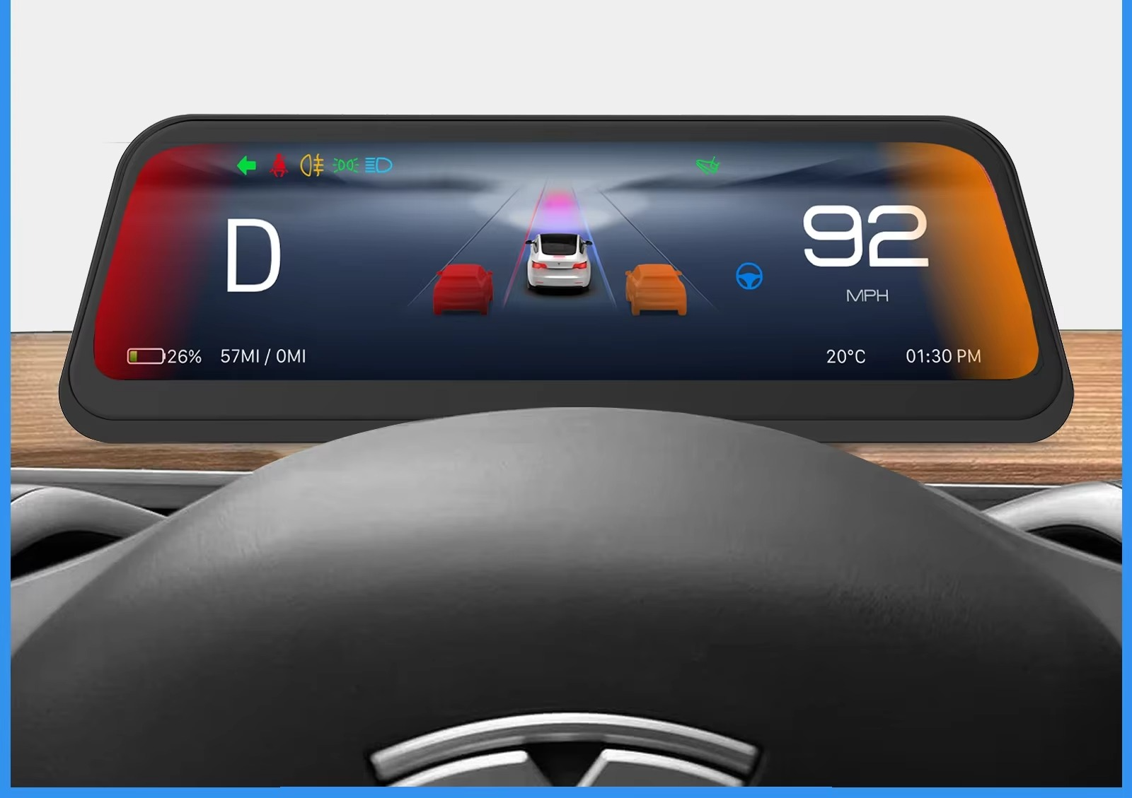 Tesla HUD Multimedija – tai modernus Head-Up Display (HUD) sprendimas, sukurtas specialiai Tesla Model 3 (2016–2023) ir Tesla Model Y (2020–2024) automobiliams. Šis pažangus ekranas leidžia matyti svarbiausią informaciją tiesiai vairuotojo matymo lauke, taip padidinant saugumą, patogumą ir vairavimo komfortą.