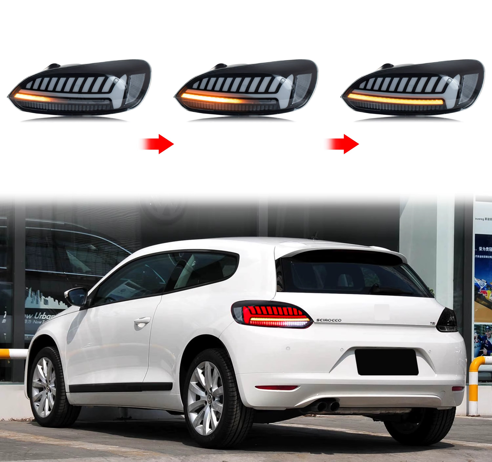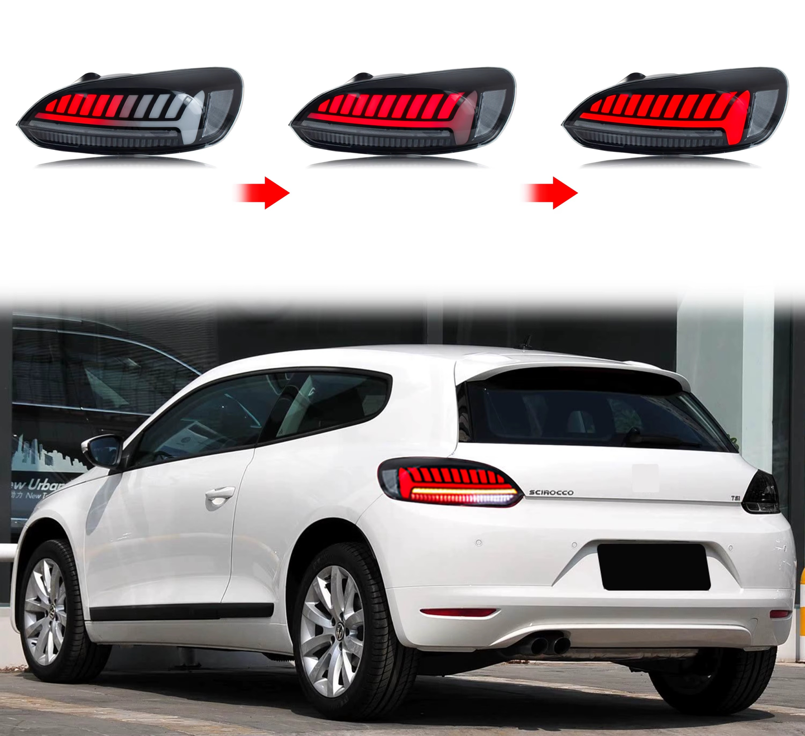 Šie galiniai LED žibintai ne tik pagerina jūsų Scirocco išvaizdą, bet ir suteikia sportišką, šiuolaikišką bei premium klasės galinės dalies akcentą.